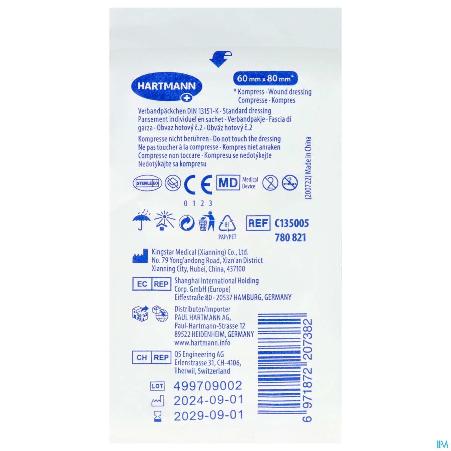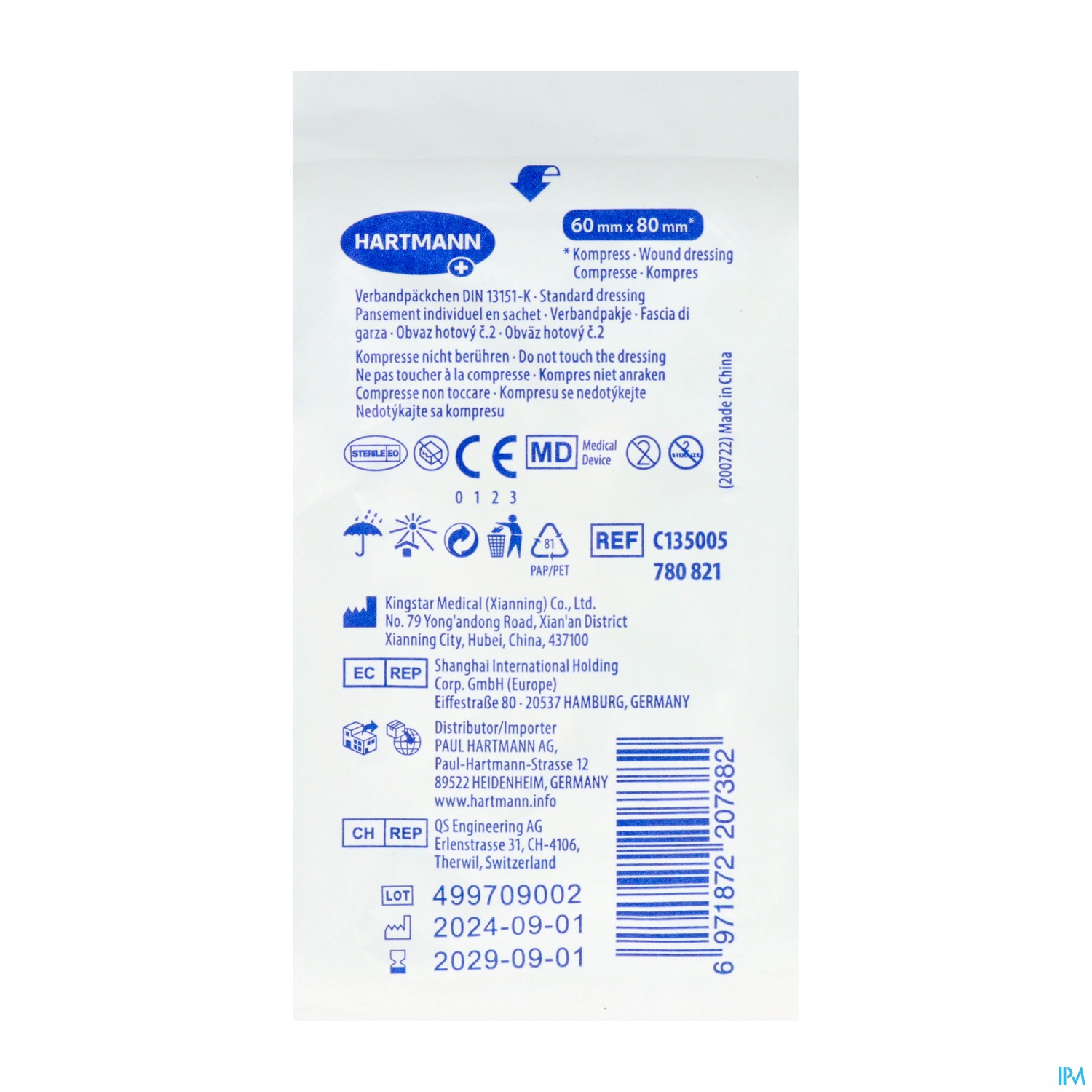 Verbandpaeckchen Hartmann Din 13151 steril 60x 80mm 1 Stück